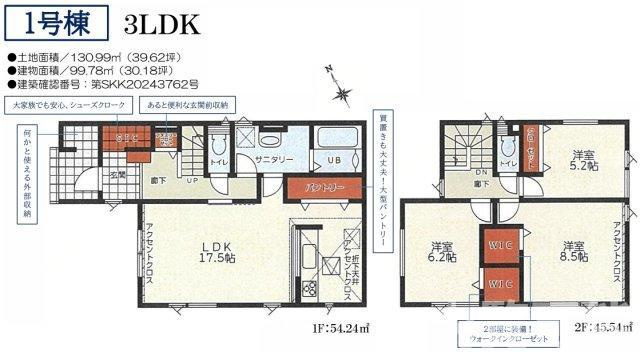 エコジョーズ / ベタ基礎(基礎断熱) / 全居室パネルヒーター / フローリング / 全居室エアコン設置可 / 室内物干機 / パントリー / スマートキー / 散水栓 / 郵便受け