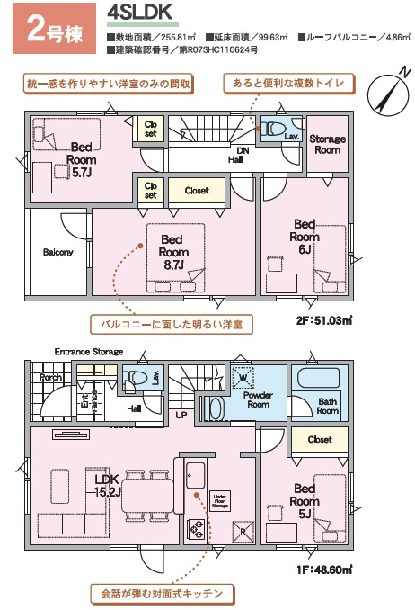 ■1号棟:土地77.19坪の4LDK+S(納戸)で建物前面に駐車4台以上可+建物裏に庭付!【角地】